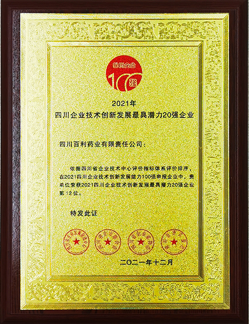 公司是國家高新技術企業,國家知識產權示范企業,擁有國家企業技術中心和國家級博士后科研工作站,是四川省技術創新示范企業,累積承擔國家科技重大專項“重大新藥創制”9項,“國家重點研發計劃”1項、“中國制造2025”工業轉型升級項目1項,承擔省級重大科技專項、科技支撐項目等省部級項目13項,公司技術和研發能力得到國家與省部級政府部門、科研機構等單位的認可,是中國兒童藥物研發與產業化聯盟成員單位。